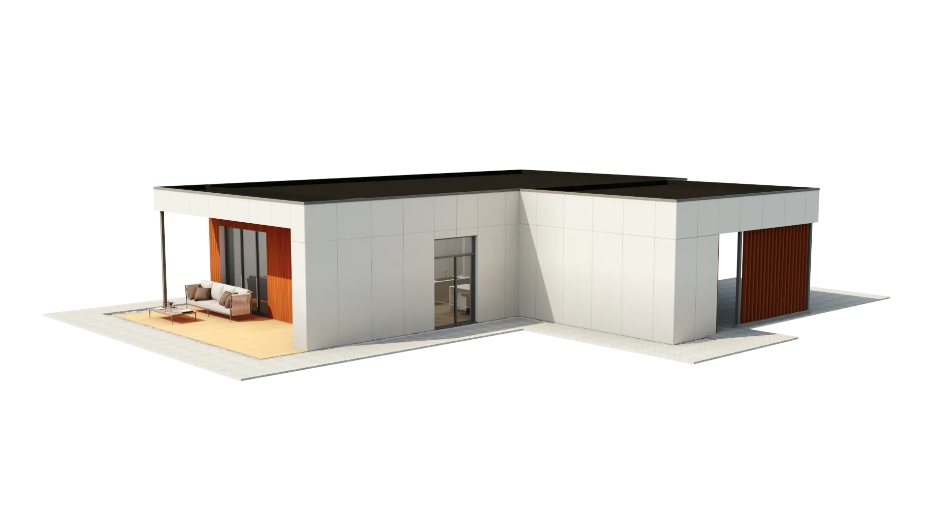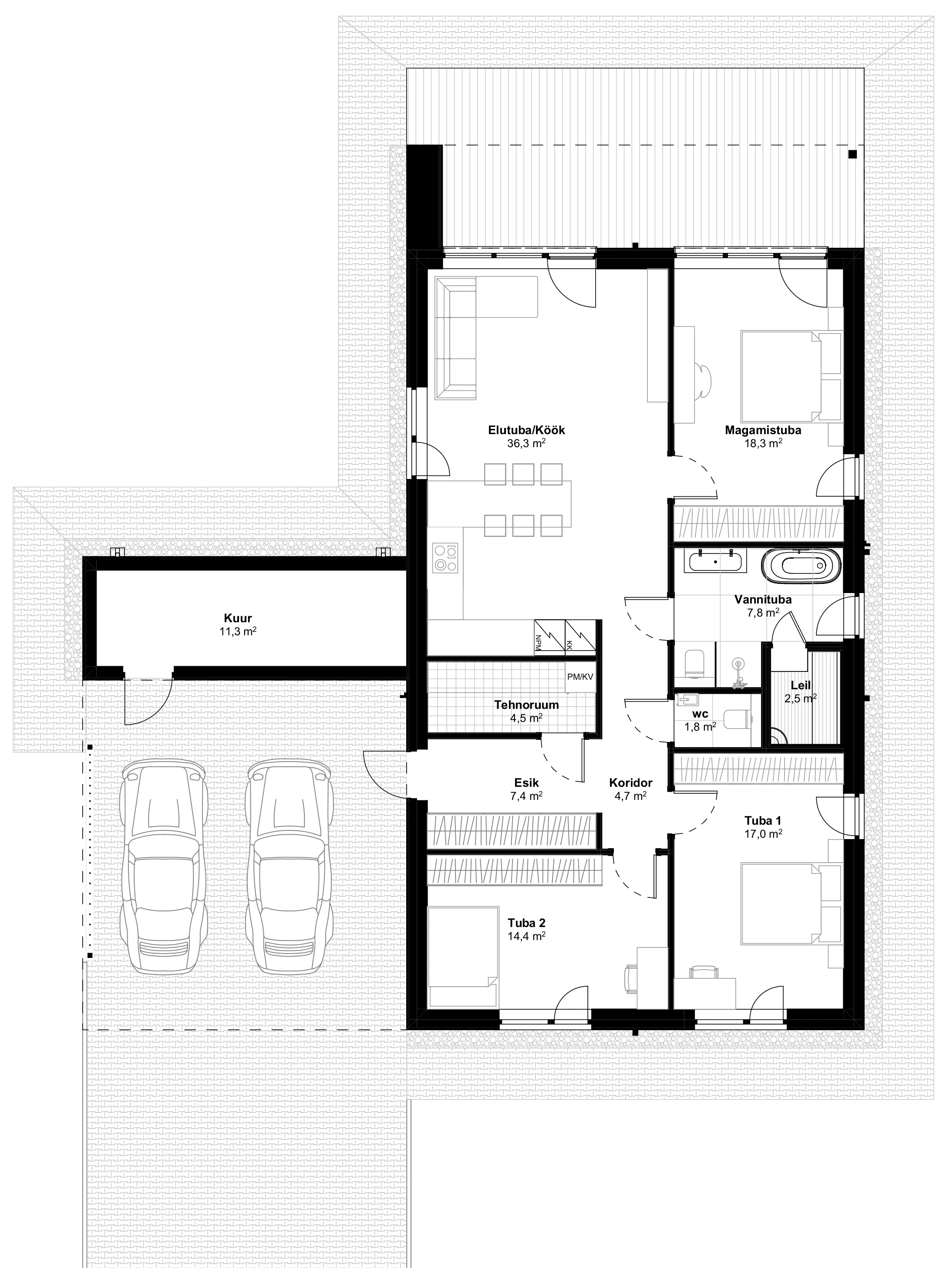Kodu juurde kuulub terrass koos õuealaga, mis on ideaalne nii hommikukohviks kui ka suvisteks grillõhtuteks. Kinnistule on planeeritud kaks parkimiskohta, millest üks asub varjualuse all, et autosid oleks mugav ja turvaline hoida.
